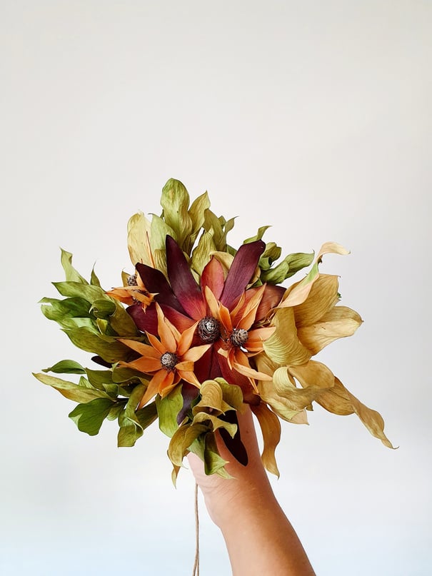 arranjos e buquês, secos ou frescos, produzidos de acordo à disponibilidade da temporada